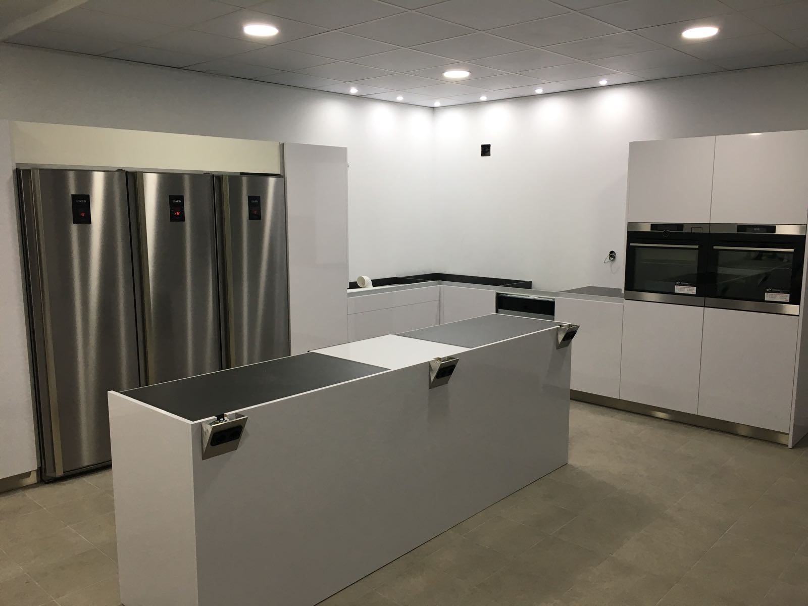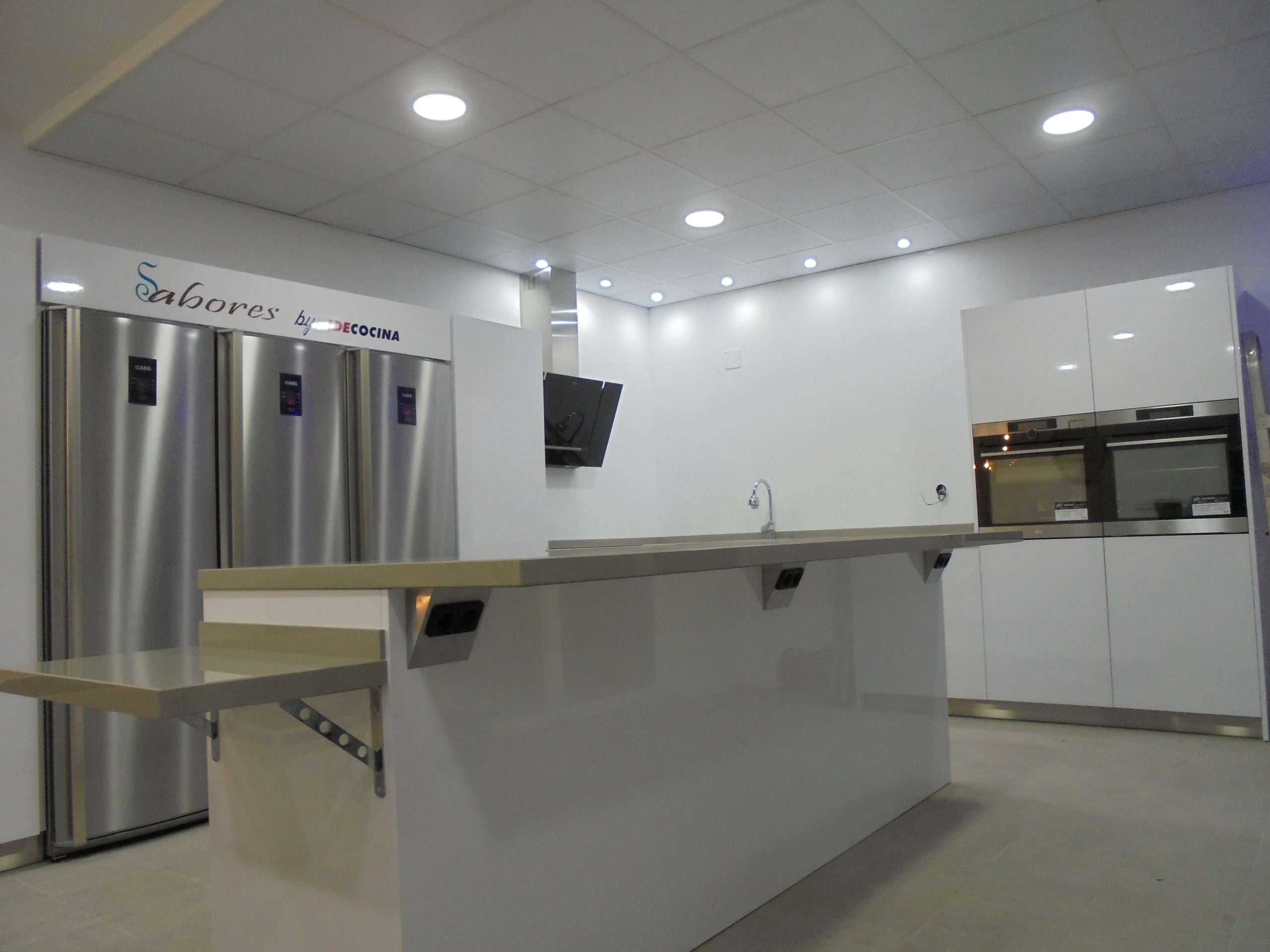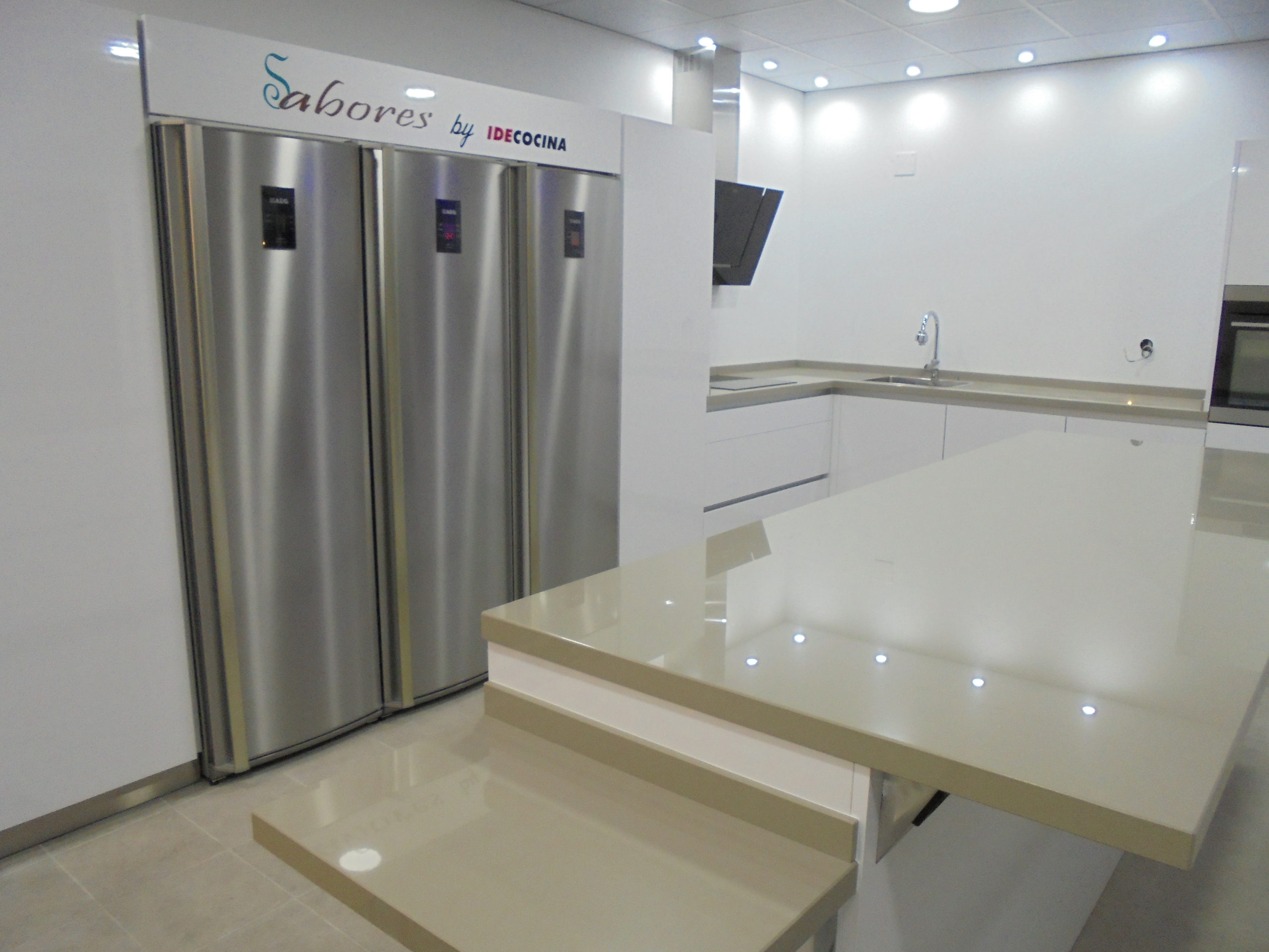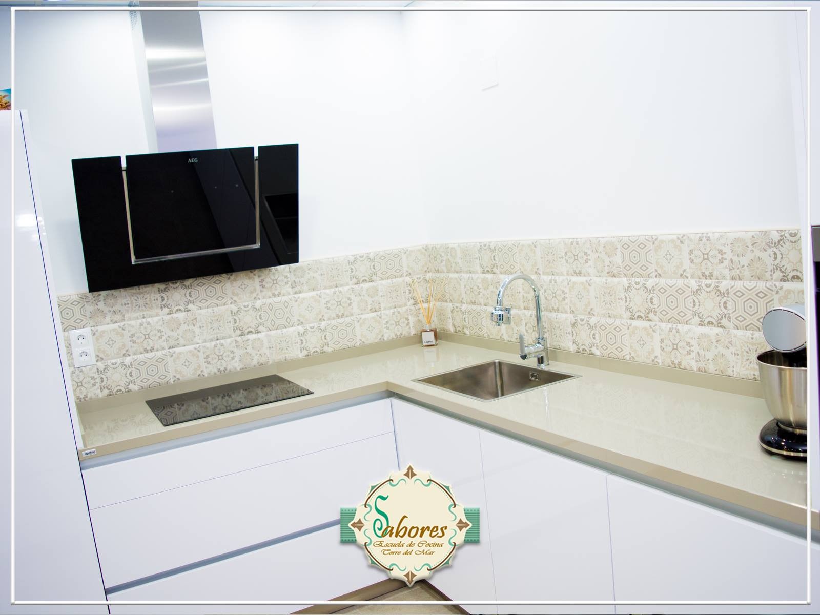 Durante el evento, Idecocina tuvo un papel relevante puesto que fuimos los encargados de crear la mejor de las cocinas para que Escuela Sabores Torre del Mar celebrar su Inauguración rodeado de más de un centenar de personas que visitaron las instalaciones del Mercado de Minoristas durante la jornada. Como siempre, confeccionamos la cocina perfecta para tal fin atendiendo a nuestros criterios de calidad y adaptándonos a lo que un lugar tan exigente como una escuela de cocina de este nivel requiere. Una cocina con herrajes y mecanismos de una dureza y resistencia inigualables, con unas superficies de trabajo con resistencia a mas de 700º, con la gama más alta de electrodomésticos AEG.